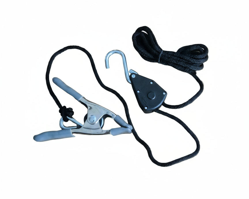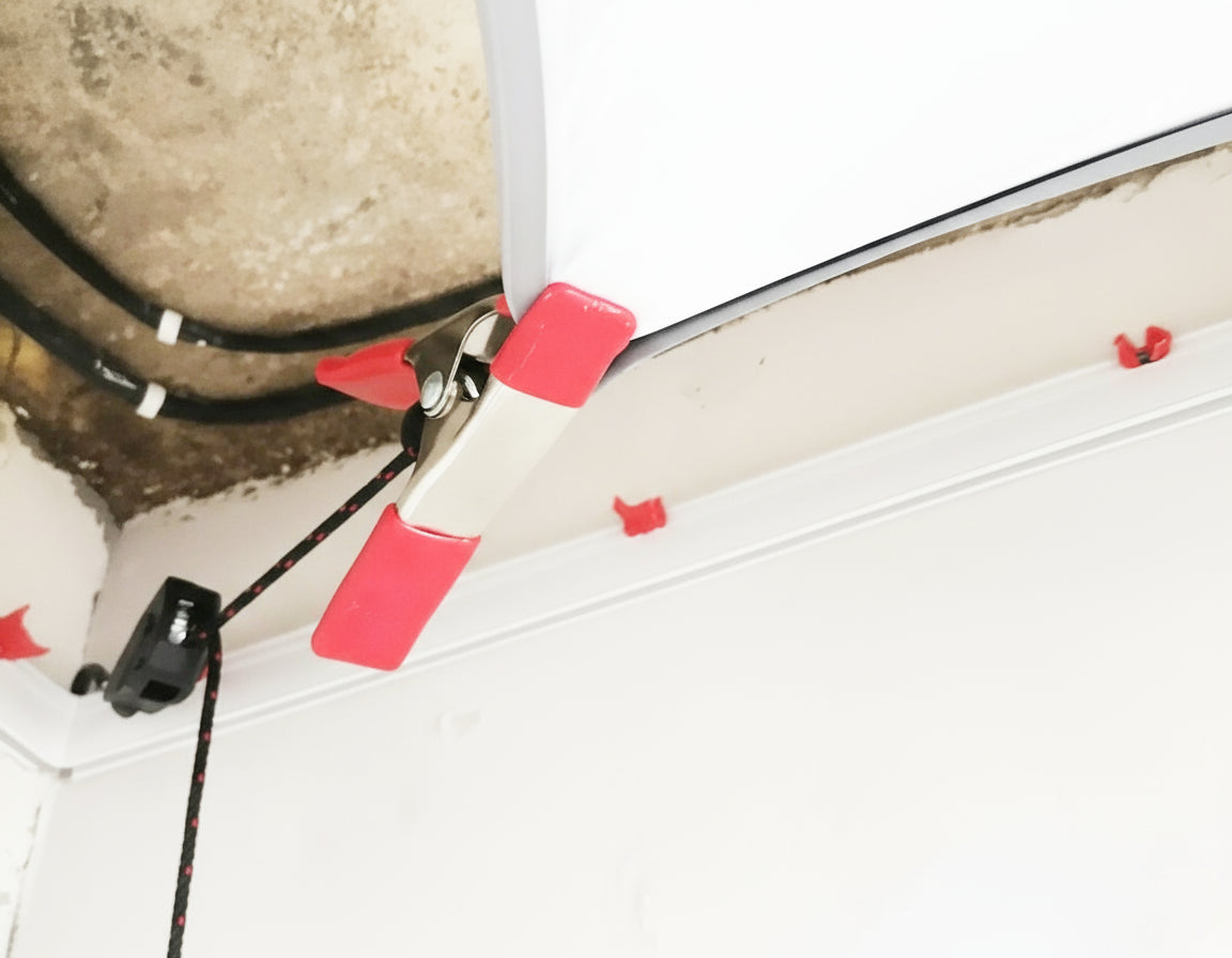 Federklemme mit Handzugratsche zum Aufhängen der Spanndecke