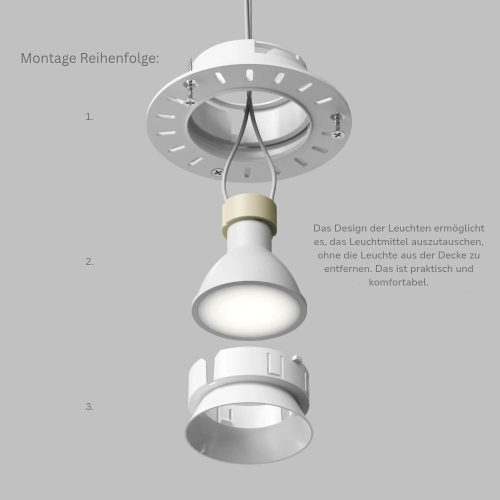 Flächenbündiger Premium GU10 Einbaustrahler IP20 rund - Farbe weiß